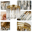 The cylindrical structure and precision-cut crystals intensify brightness, allowing the fixture to cast a radiant, multidimensional glow that beautifully complements contemporary and glam interiors.