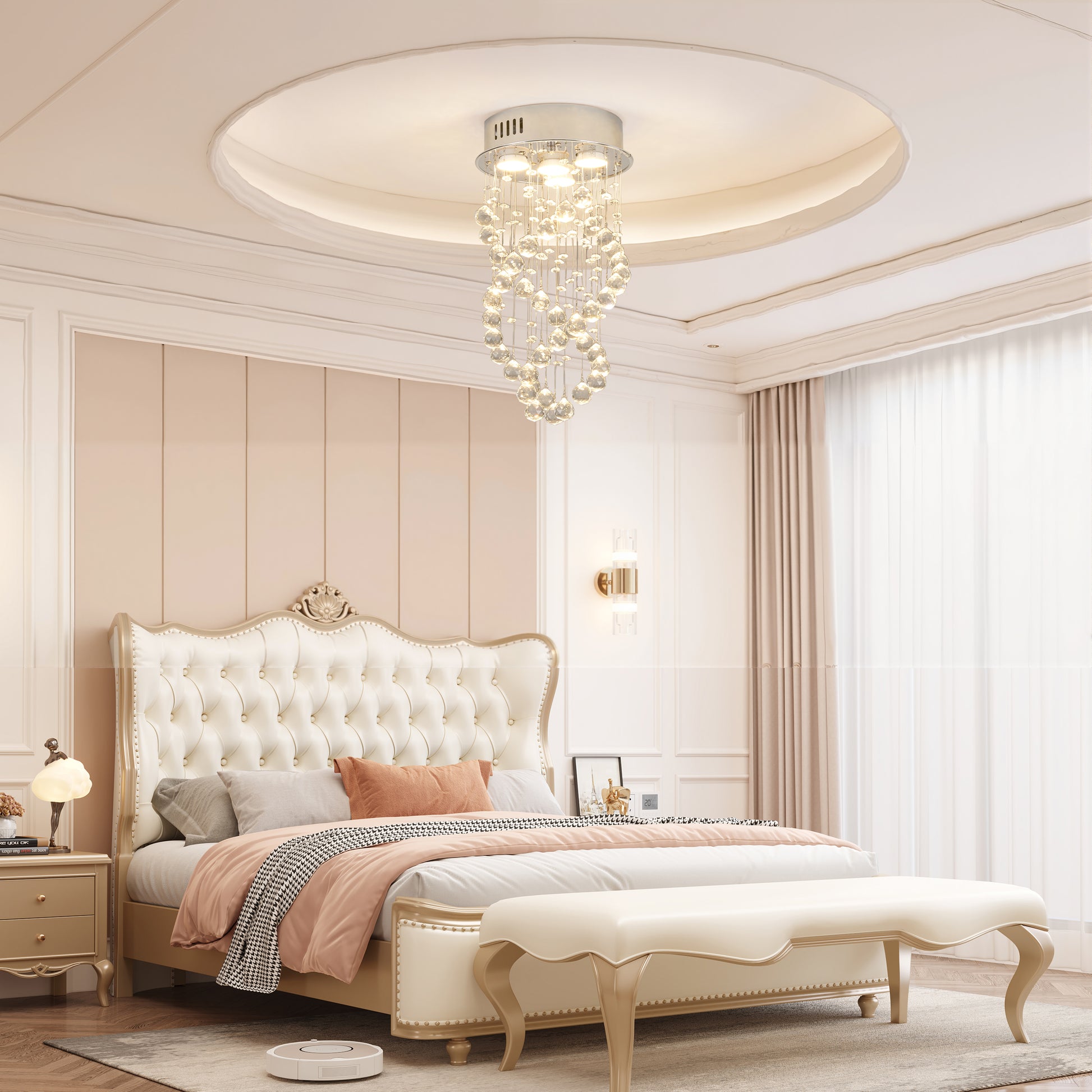 The HAUSPRO Rome Gold Crystal Flush Mount Light is a masterfully crafted piece created to elevate the character of any room. Designed in a true flush-mount style, it sits seamlessly against the ceiling, offering a clean, modern silhouette while delivering exceptional brilliance. Its polished gold base paired with high-quality K9 crystal bars brings a refined, high-end aesthetic that instantly enhances your interior.