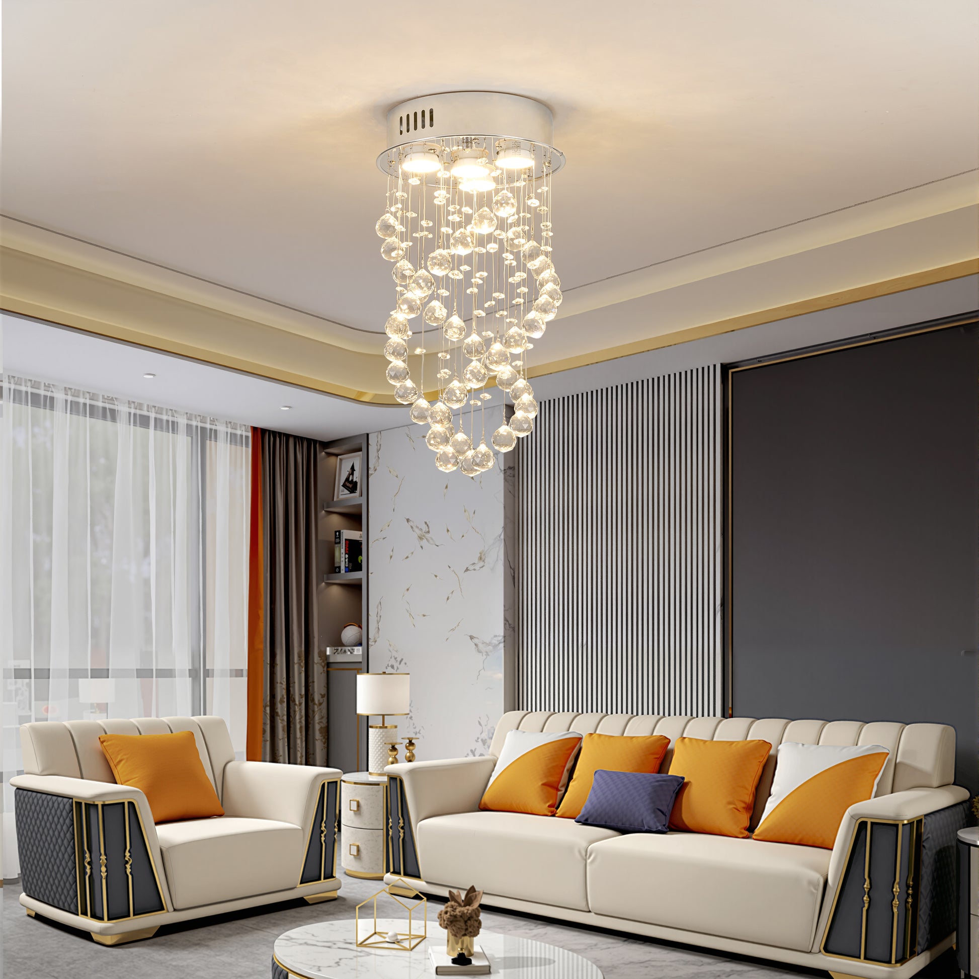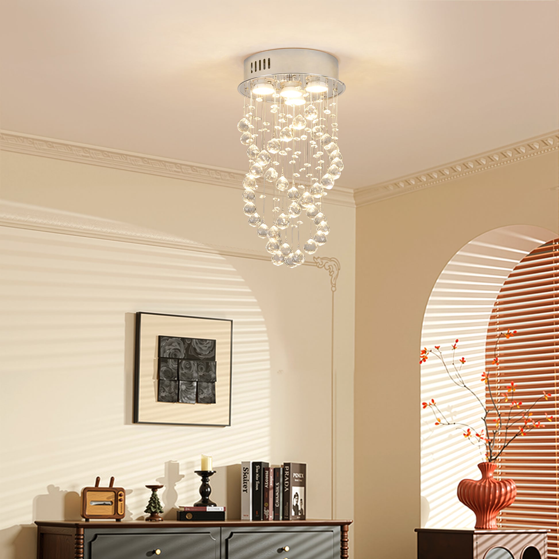 Transform your hallway into a welcoming and stylish space with this modern crystal flush-mount light. Designed to sit elegantly against the ceiling, it provides a sleek and clean look while casting a warm, inviting glow throughout the corridor. Its crystal elements add a touch of sophistication and sparkle, making every entrance feel luxurious.